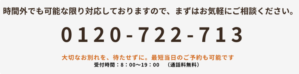 ご拾骨のお時間を含めますと、トータルで2〜3時間ほどをみていただければ安心です。