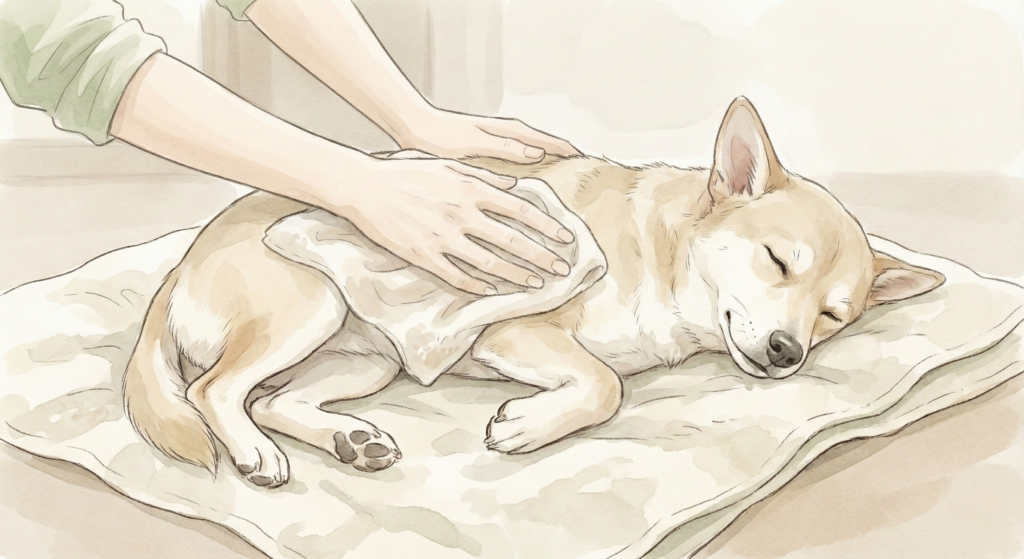お体が傷んでしまうのを防ぐため、できるだけ早く涼しい環境で安置してあげる必要があります。以下の手順を参考にしてください。